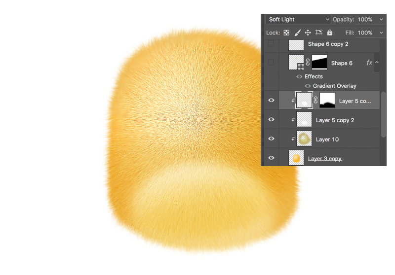继续新建一层,运用“椭圆工具”画一个白色的椭圆形状,将混合模式设置为“柔光”,作为它的小肚子。