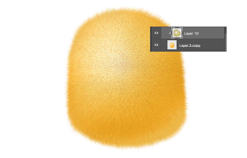 4.新建图层,用画笔工具选择毛发笔刷轻轻画在毛与身体处,羽毛就画完啦。