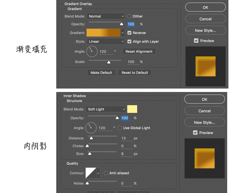 再画一个正圆,添加图层样式,如图: