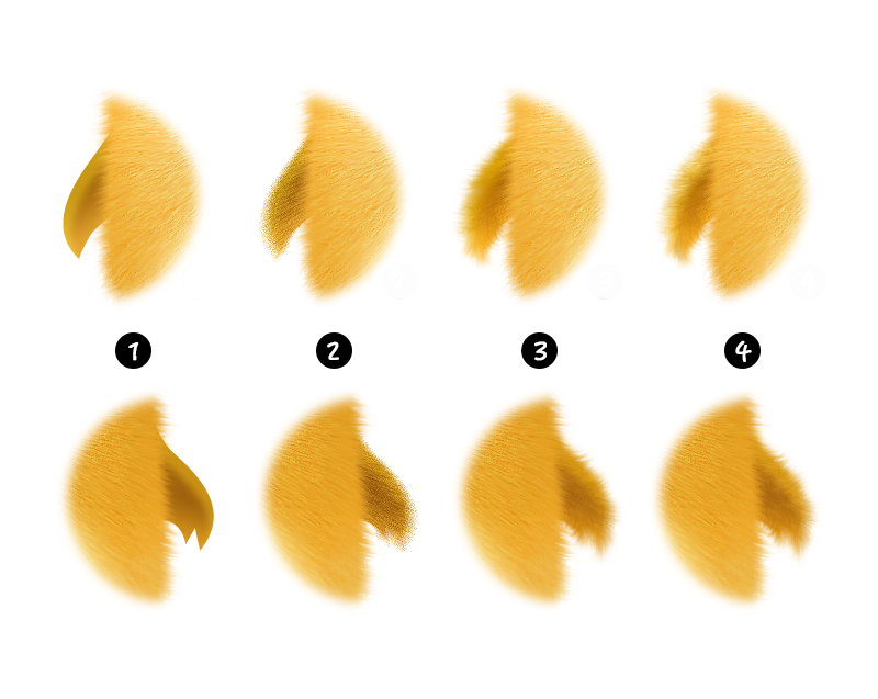 接下来要做边缘的小绒毛。运用“指尖涂抹工具”,并设置笔刷为我们刚才创建笔刷。耐心的将边缘顺着形状逐渐涂抹,这一步相当关键,一定要有耐心。 如下图: