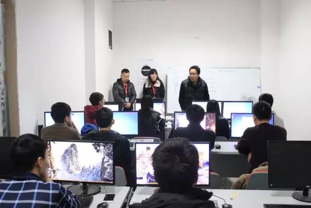 然后是VR教研组组长李老师给同学们详细的介绍了虚拟现实课程安排、学习周期、前景等等。李老师随后对同学们今后的学习提出了实用的建议,同时他还希望大家要克服学习路上的一切艰辛,成为技术实力和职业素养兼备的企业急需的高端人才。